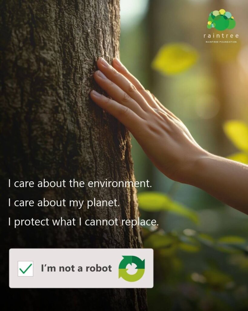 At Raintree Foundation, we believe it’s our ability to care — for nature, for water, for biodiversity, and for each other. This campaign uses the simple act of the reCAPTCHA test to spark a deeper conversation.